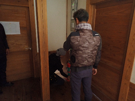 日本では子どもの頃から何度も訓練した説明不要の基本動作ですが、机の下にもぐり、揺れがおさまるのを待ちます。