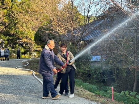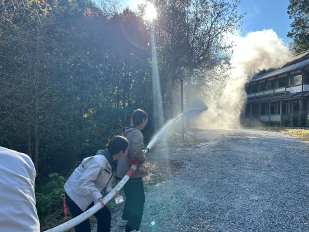 実際にホースを扱うことで、水圧の強さや放水時の姿勢の重要性を体感することができ、参加者からは「実際にやってみると想像以上に力が必要だった」「定期的な訓練が必要だと感じた」といった声が聞かれました。