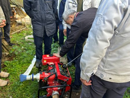 訓練開始時には可搬式消防ポンプのエンジン始動にやや時間を要する場面もあり、機器の始動確認や整備の重要性を再認識する機会となりました。