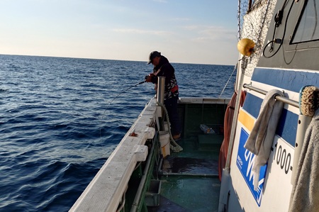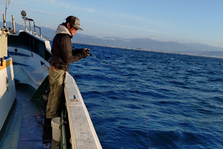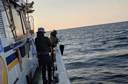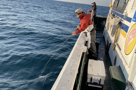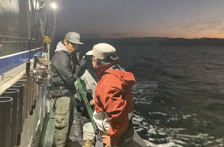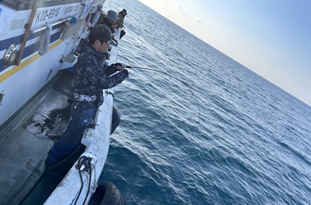 船長のアドバイスのもと速めにジャークを入れて食いのスイッチを入れてあげるとよいとのことなので皆さん頑張ってしゃくっています、すると