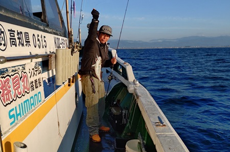 狙いはカンパチ、大きいものは10㎏を軽く超え、最大50㎏以上にもなる魚です。高知ではシオ→ネイリ→カンパチとサイズにより呼び方が変わる魚ですが出世魚ではありません。