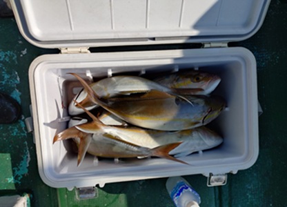 今回狙うのは1㎏~3㎏程度のシオやネイリ(ネリゴ)と呼ばれるサイズのカンパチです。この時期小型のアジやイワシを捕食しており脂乗りがよく、所謂旬とされる時期になります。いざ大漁を願って出船です!