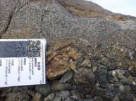 花崗岩の観察では、花崗岩の上位に不整合に重なる礫岩を観察しました